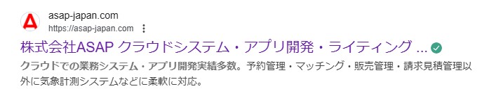 Google 検索結果において、サイト名を適切に表示させるためには、WebSite構造化データを使用してサイト名を指定することが推奨されています。ですから、当然株式会社ASAPと表示させるのがベストなわけです。